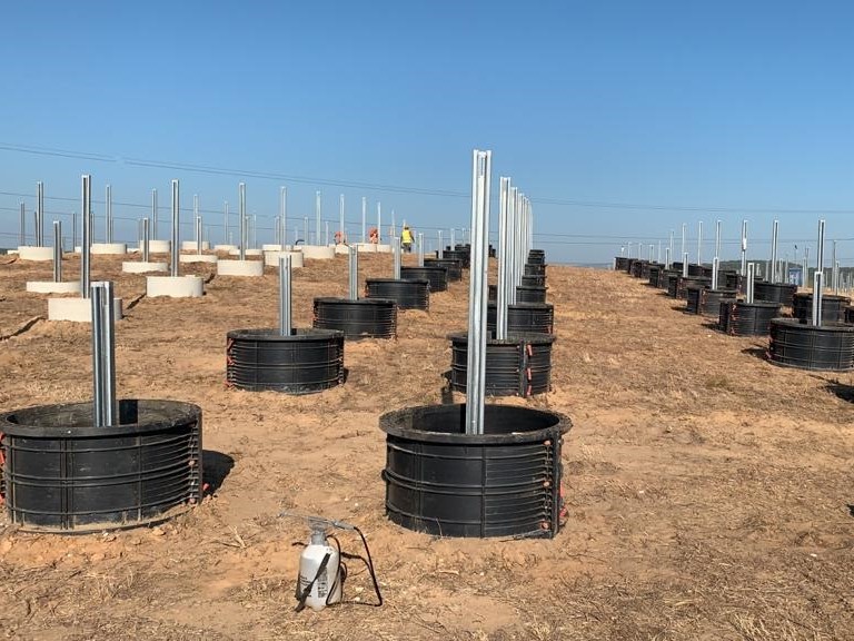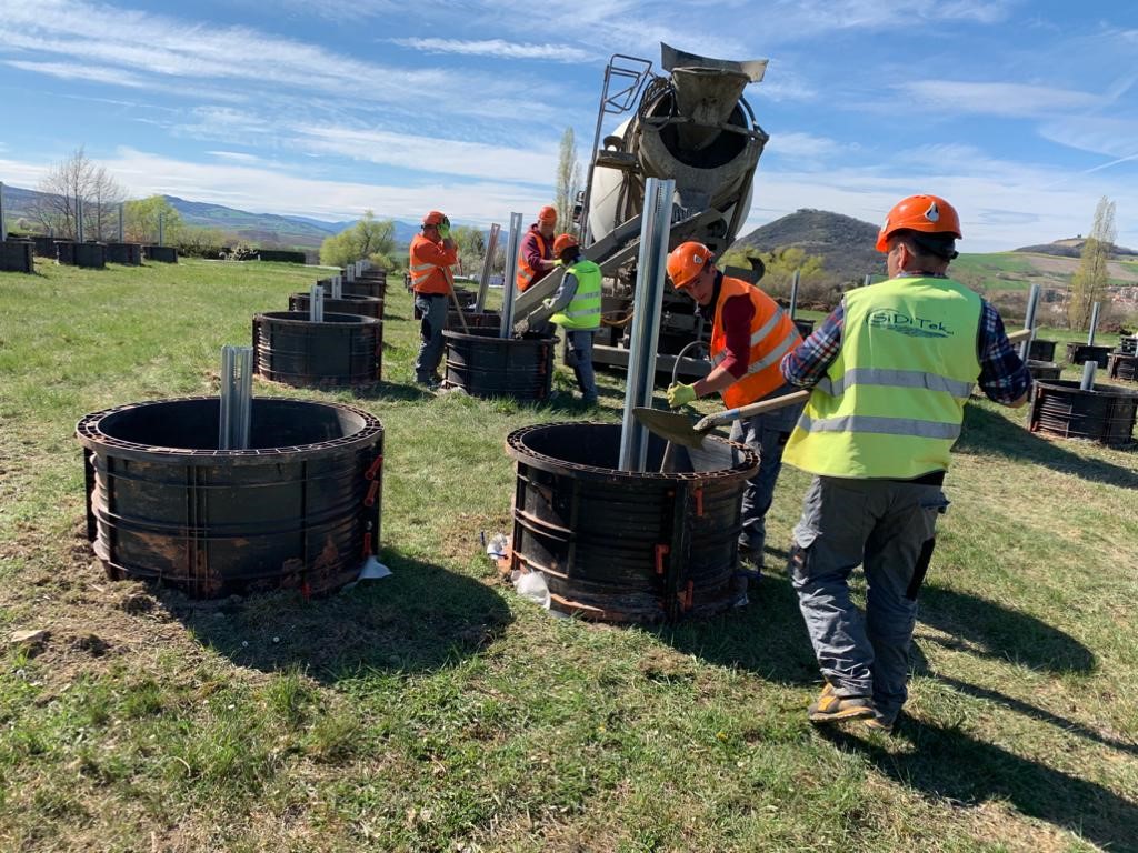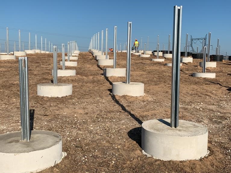 If the ground conditions are not suitable for piledriven or screw foundations, we employ concrete foundations. These can be arranged very precisely in a previously gravel bed and are used, for example, in disposal sites where seals must not be damaged or there are large obstacles buried in the ground. Even reinforced and unreinforced concrete structures can be partially formed to accommodate special structure requirements.